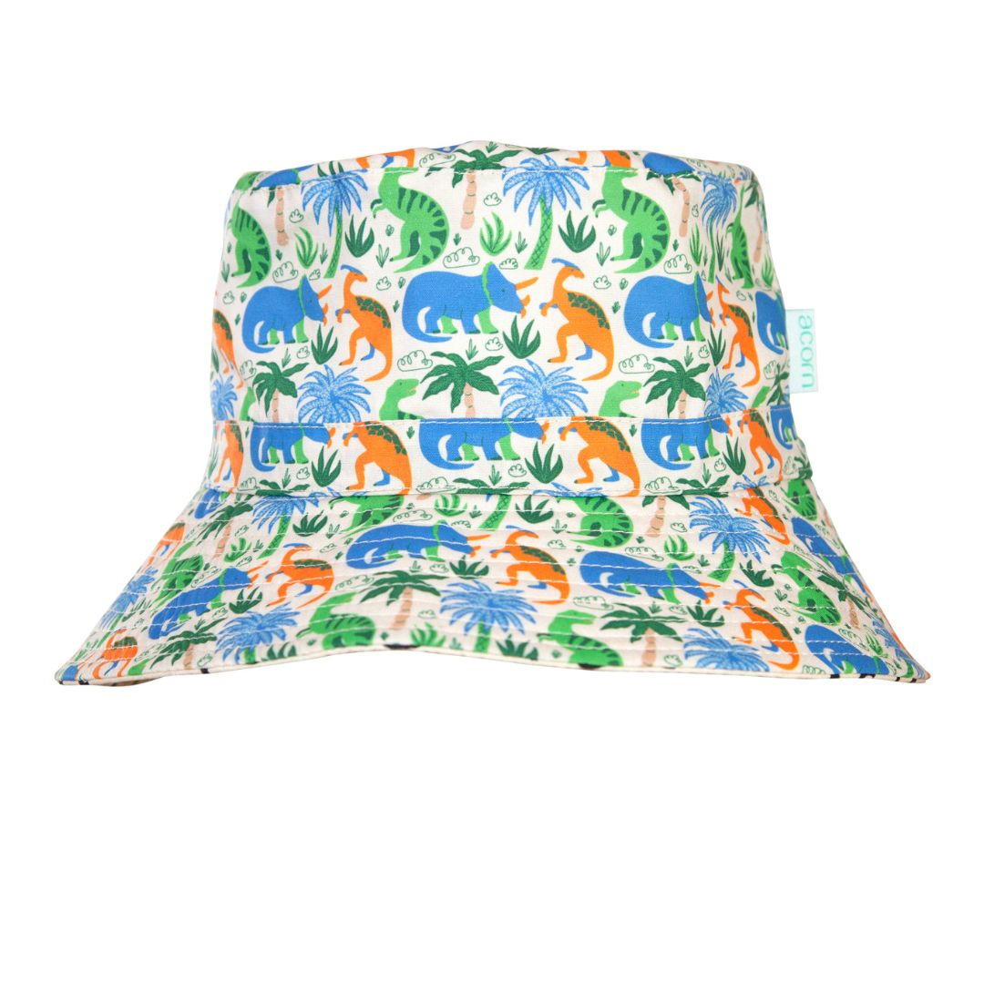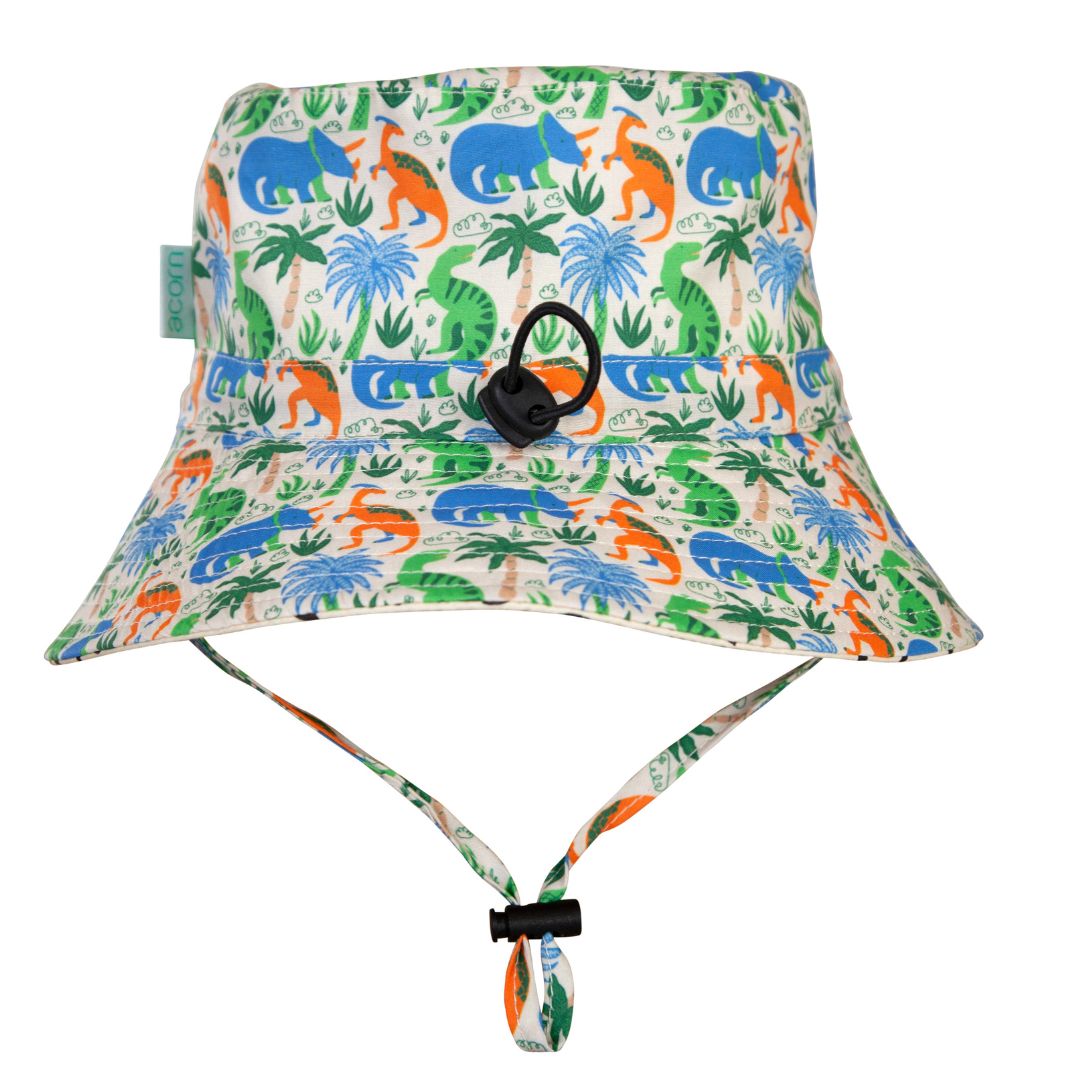 Prehistoric is our latest kid's sun hat from our friends at Acorn Kids which features T-Rex, Triceratops and Parasaurolophus.