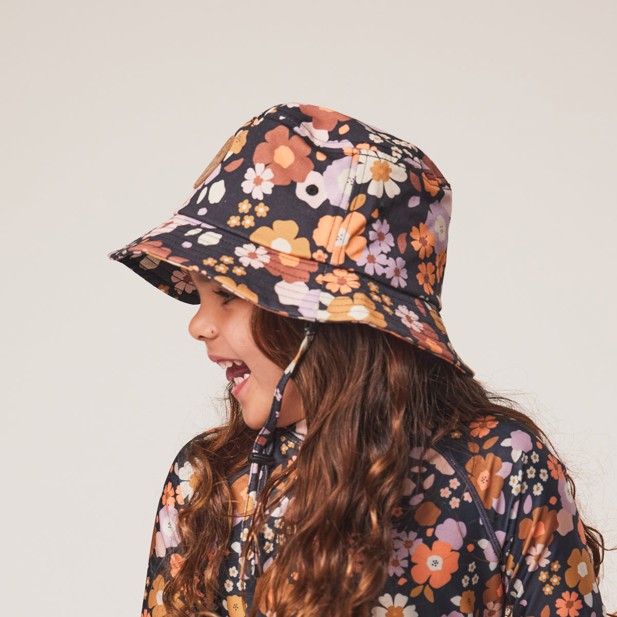 With a 70's summer vibe,  this sun hat is perfect for beach adventures and all day play to keep little one's sun safe this season.